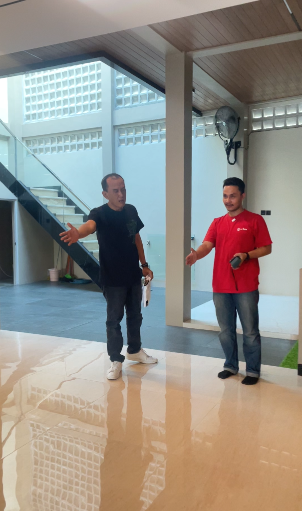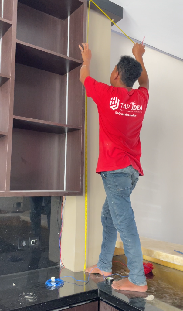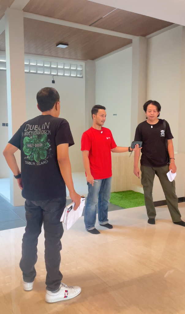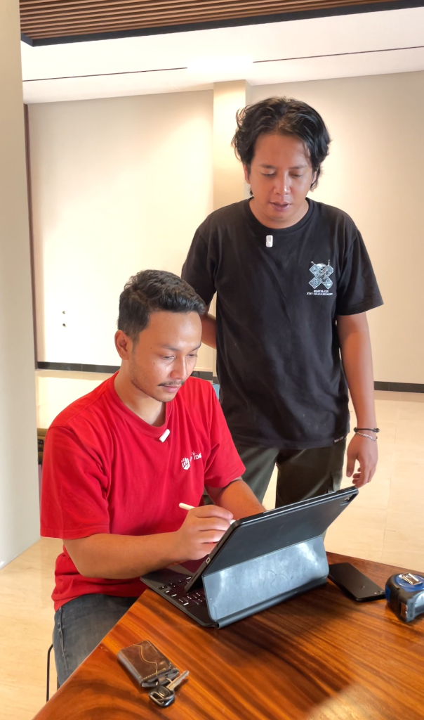 Tim kami turun langsung ke rumah klien untuk melakukan survei bar table custom. Pengukuran presisi, analisis cahaya, kondisi lantai, dan tata letak ruangan menjadi data penting yang kami kumpulkan sebelum satu pun gambar desain dibuat. Ini adalah komitmen kami — desain yang baik harus lahir dari pemahaman nyata tentang ruangnya.