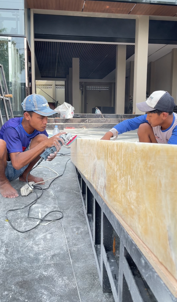 - Setiap slab adalah karya unik. Tidak ada dua potong onik yang sama persis. Klien mendapatkan meja yang benar-benar eksklusif — satu-satunya di dunia, sama seperti ruang pribadi yang ia impikan.